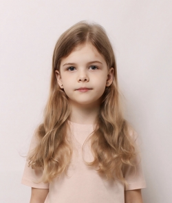 Активный, позитивный и любознательный ребёнок. Не боится камеры и людей. Любит животных. Кудряшки от природы.