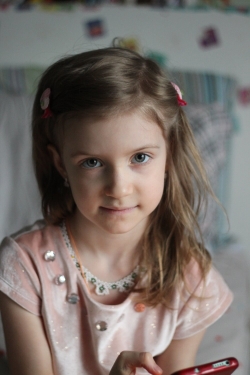 Прекрасная, лучезарная, милая, нежная, девочка семи лет. Классно смотрится в кадре.