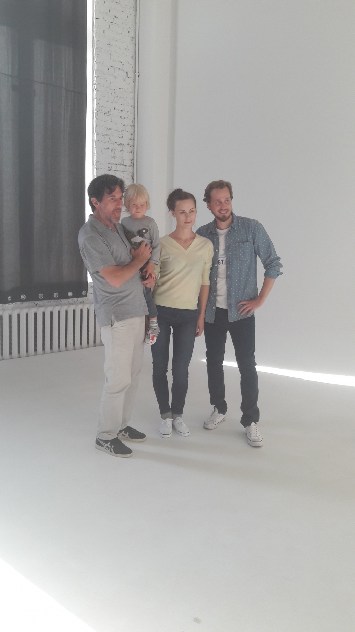 Рекламная семья... Матвейчик на руках у режиссера...