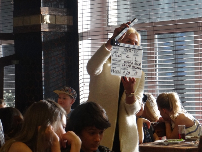 Телесериал выйдет на экран в 2017 г. На фото мы с Ангелиной в кафе договариваемся о том, где искать тайную дверь. Затем идут сцены с Биланом. Мне говорят, чтобы я спрятался, т.к. меня похитили. Я решил залезть за барную стойку в конце зала в кафе, позади которой висел огромный телевизор, и ...