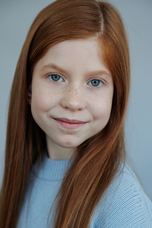Активная, эмоциональная, смешливая, любит властвующие роли (старшая сестра, бабушка с клюкой – ее конек). Способна воспринимать информацию на уровне выше 9 лет. Может ругаться на камеру, если это требует сценарий.