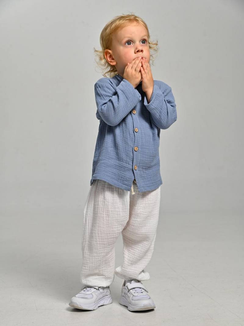Не боится камеры, съёмочной группы, идёт на ручки к актёрам. Спокойный малыш. Любит музыку, танцевать.