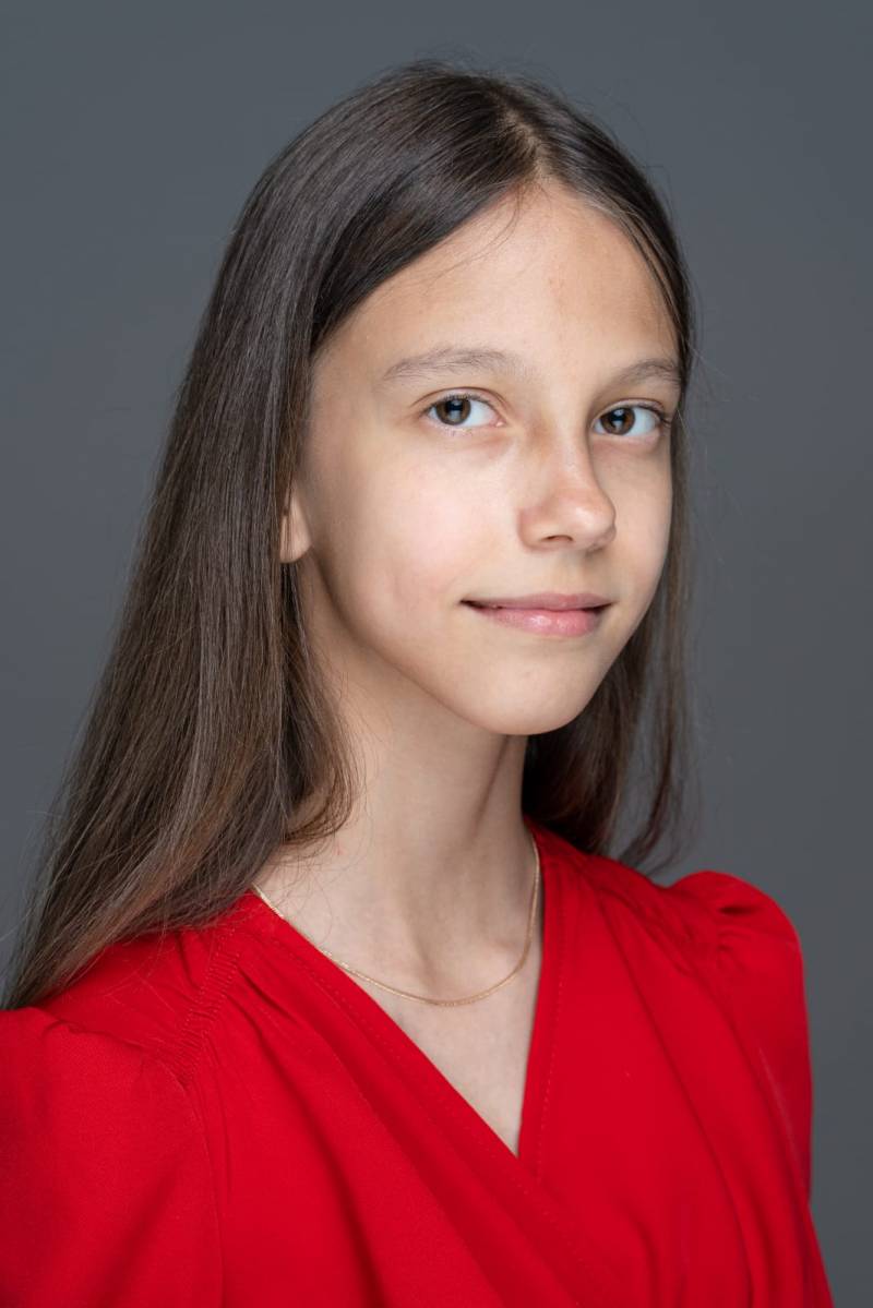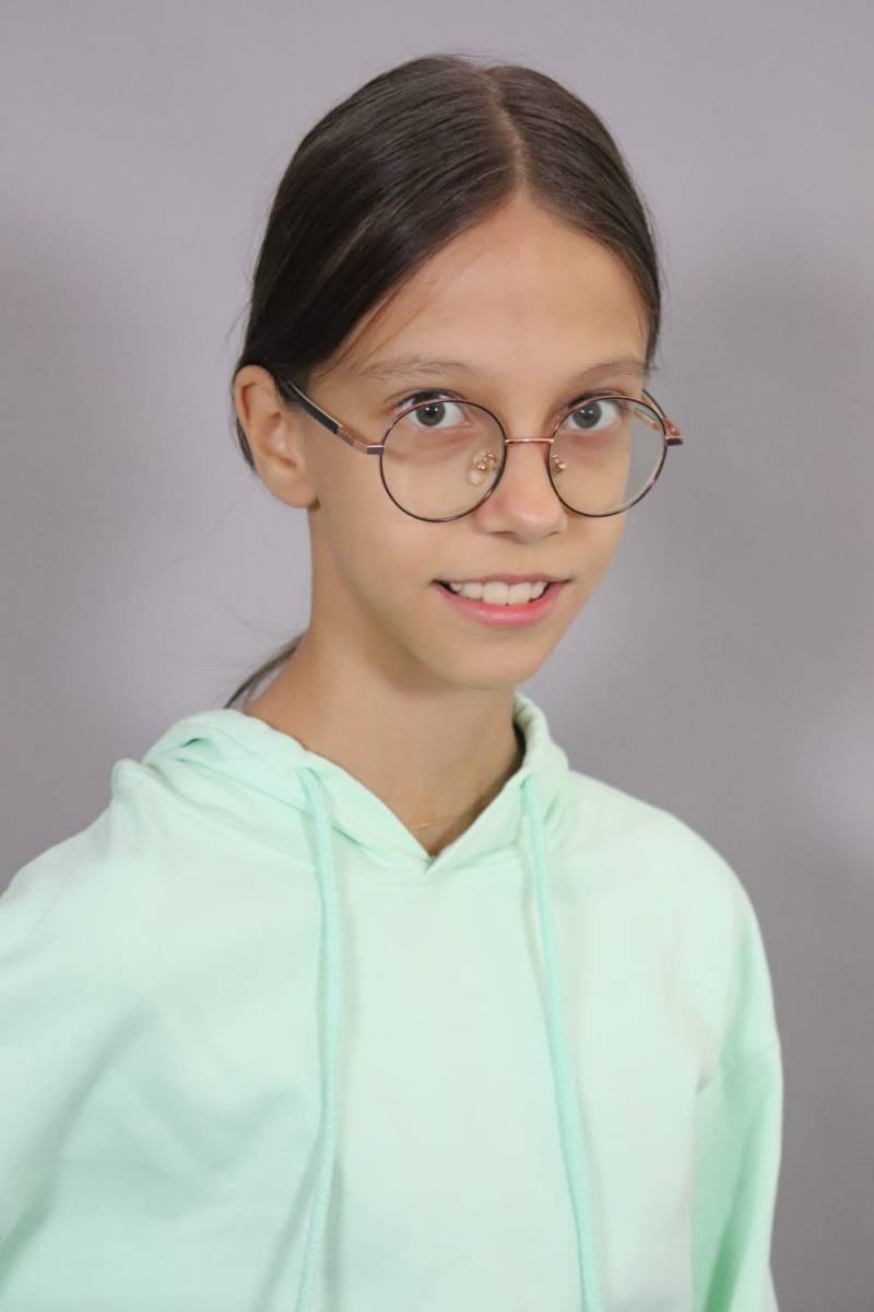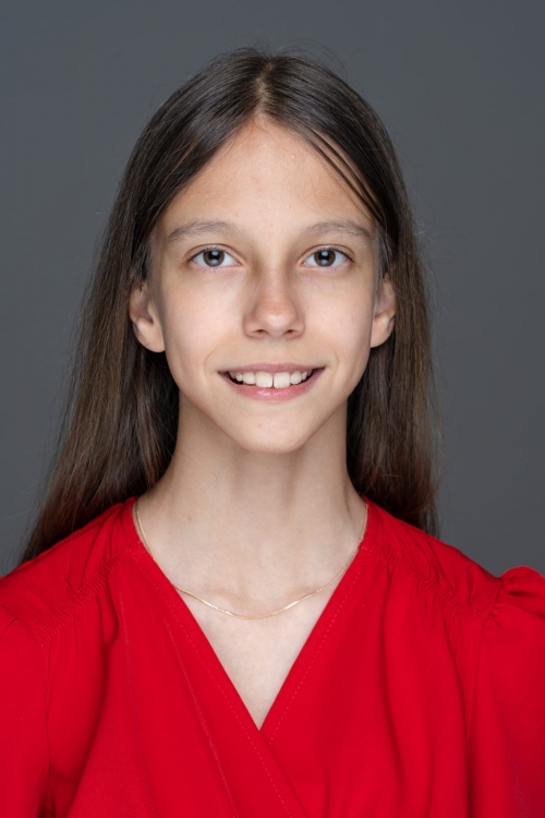 Театральные работы: Участвует в спектаклях театральных студий с пяти лет. С 2024 года актриса театра- студии "Душевный". Спектакль "Синяя борода" по Ш. Перро. Режиссёр Т. Шулепова. Роль: сестра невесты Синей бороды. Спектакль "Кэтхаус" по С. Маршаку. Режиссёр Л. Тихомирова. Роль: Рассказчица. Спектакль "Маленькая Баба-Яга" по О. Пройслеру. Режиссёр Е. Тимофеева, Л. Тихомирова. Роли: Влюблённая метла, чудо, девочка.